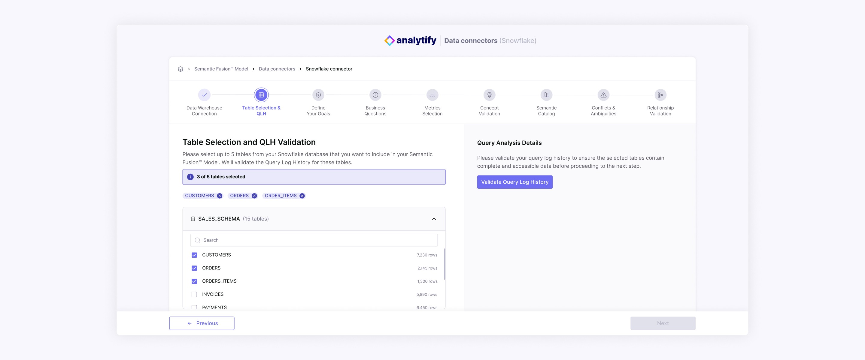 Designing the table selection step required balancing clarity and scalability, as each schema could include many tables while users were limited to selecting only a few.